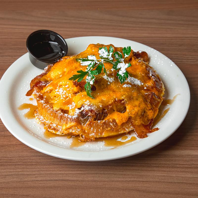 Chicken katsu, bacon, cheddar cheese, spicy mayo, powdered sugar & maple syrup.