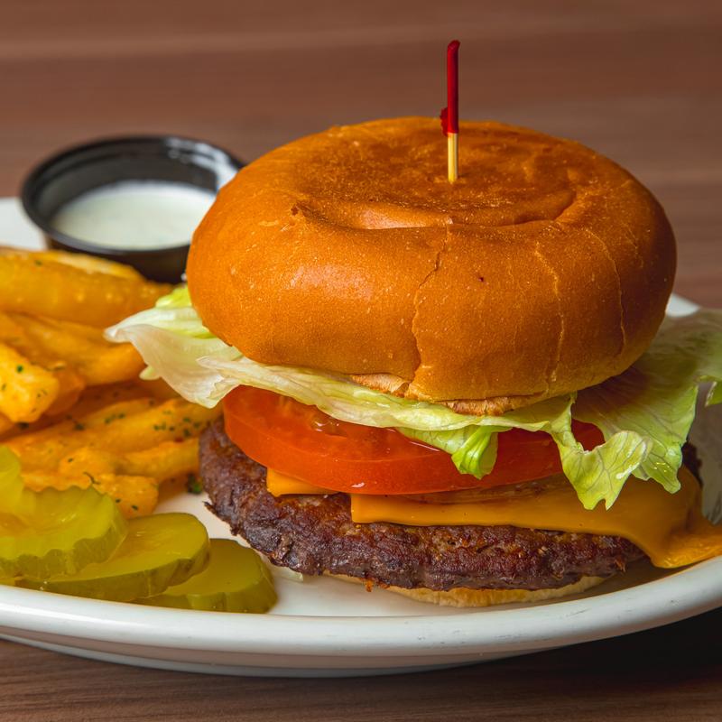 1/3 lb. USDA Choice Ground Chuck, caramelized onion, lettuce, tomato, American cheese, 1000 Island dressing on brioche bun • Add Bacon or Avocado +$1.25, Add Mushrooms, Egg, or Cheese +$0.75 each